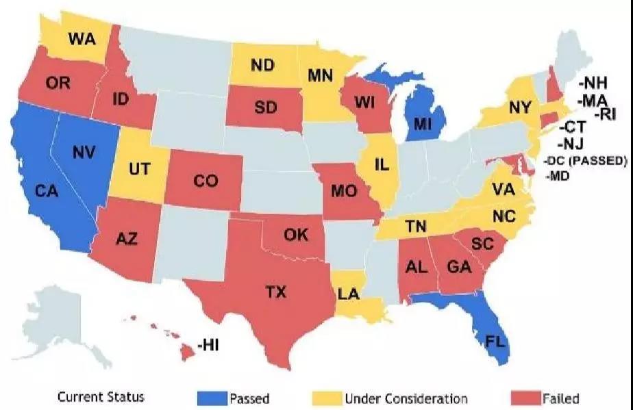 隨著無人駕駛技術(shù)的不斷發(fā)展演進(jìn),對無人駕駛的立法變得十分重要。截至2015年,美國已經(jīng)有16個州啟動無人駕駛立法;截至2014 年是12個州,截至2013年是9個州,截至2012年是6個州。Nevada 在2011年授權(quán)無人駕駛車的運(yùn)營,是全美第一個授權(quán)無人駕駛的州。之后,California,F(xiàn)lorida,Michigan,North Dakota,Tennessee和 Washington D.C 針對無人駕駛通過了相關(guān)的法案。Arizona州長簽署了無人駕駛的行政命令。