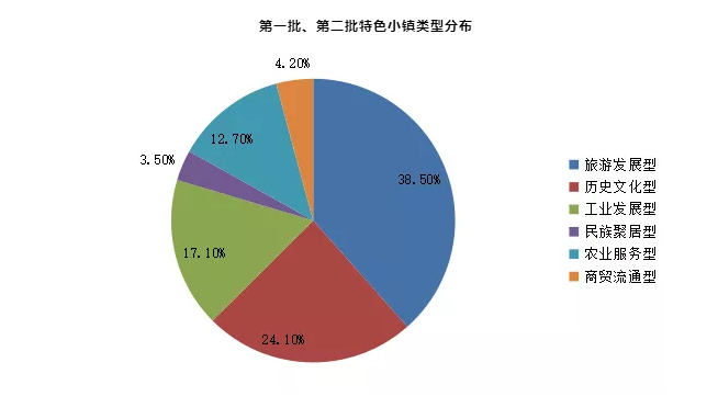 結(jié)合住建部推薦工作的通知,特色小鎮(zhèn)的類型主要有工業(yè)發(fā)展型、歷史文化型、旅游發(fā)展型、民族聚居型、農(nóng)業(yè)服務(wù)型和商貿(mào)流通型,經(jīng)過整理分析,旅游發(fā)展型的特色小鎮(zhèn)數(shù)量最多,為155個,占總數(shù)的38.5%;其次為歷史文化型特色小鎮(zhèn),數(shù)量為97個,占比為24.1%。