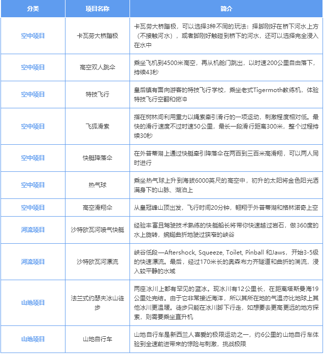 皇后鎮(zhèn)被譽為“探險之都”的原因在于其得天獨厚的自然資源。南阿爾卑斯山是新西蘭最高大的山脈,巍峨高聳、峽灣眾多,是蹦極的極佳選擇。同時,美麗的瓦卡蒂普湖是新西蘭第三大湖泊,由于形狀獨特有特殊的潮汐現(xiàn)象頗具特色。因此,除蹦極外,滑雪、噴射快艇和山地自行車均是“探險之都”皇后鎮(zhèn)的熱點項目。