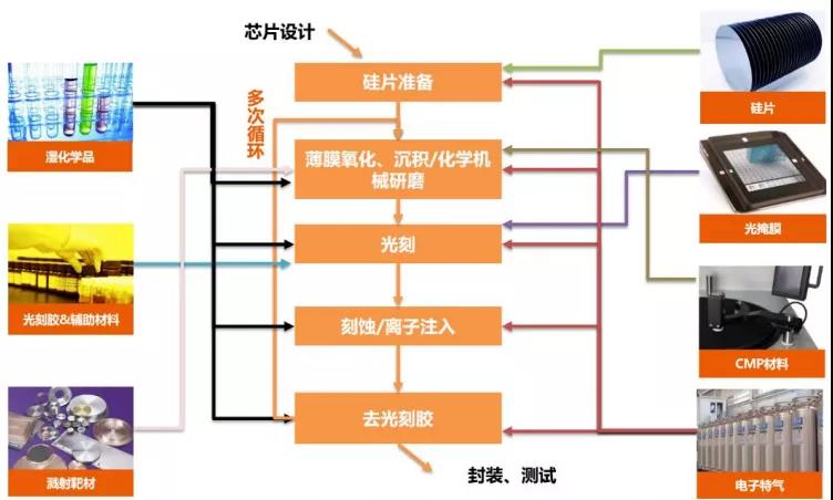圖表2  芯片制造工序各單項(xiàng)工藝均配套相應(yīng)材料