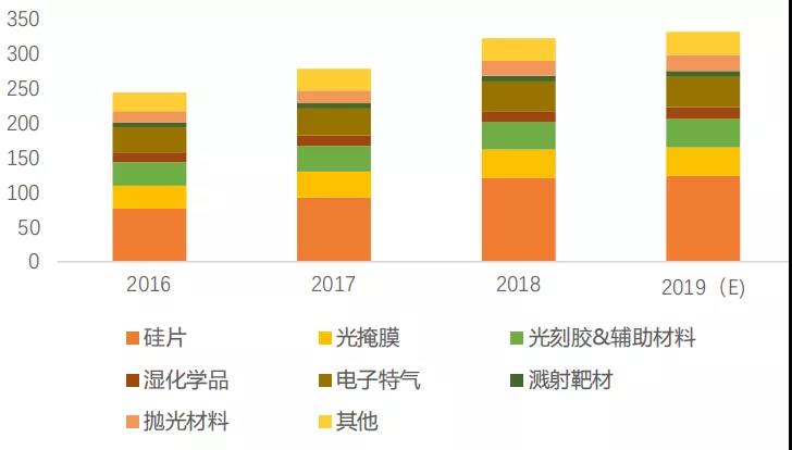 圖表5  全球半導(dǎo)體制造材料細(xì)分市場(chǎng)規(guī)模