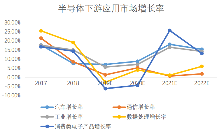 圖表13  半導(dǎo)體不同應(yīng)用市場(chǎng)增長(zhǎng)率情況