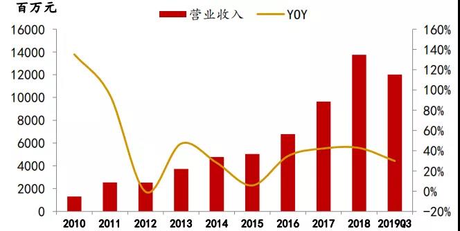 圖表16  中環(huán)股份營(yíng)業(yè)收入(百萬(wàn)元)