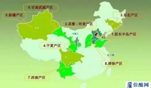 中國的9大葡萄酒地區(qū),分別為東北、河北昌黎、膠東半島、河北懷涿盆地、山西清徐、新疆、甘肅武威、寧夏賀蘭山東部以及西南地區(qū),九個(gè)產(chǎn)區(qū)的葡萄表現(xiàn)也獨(dú)具風(fēng)格。