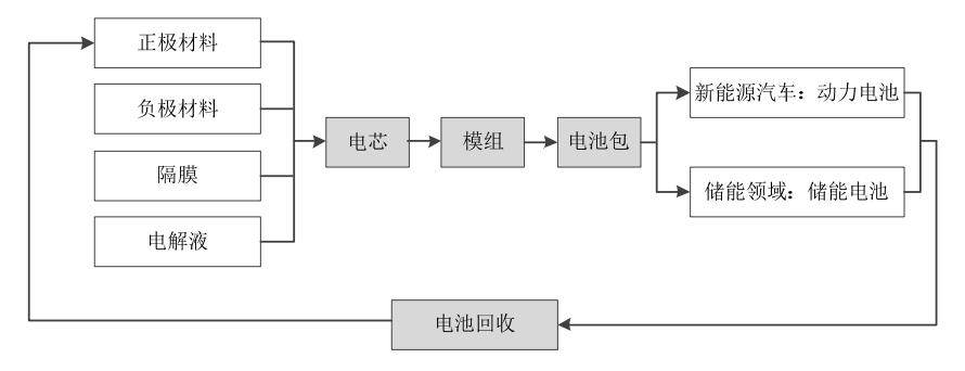 新能源動(dòng)力電池產(chǎn)業(yè)鏈包含電芯/電池PACK、正負(fù)極材料、電解液、隔膜以及電池管理系統(tǒng)(BMS)。