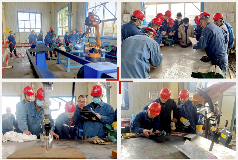 針對焊接機器人的具體操作,信息科技公司派遣專業(yè)技術(shù)人員前往現(xiàn)場開展了詳細的講解和演示。技術(shù)人員對GR-C操作系統(tǒng)、各類參數(shù)基本設(shè)置、程序編輯示例、程序管理與指令編輯、輸入輸出及PLC功能、程序加載及功能檢測、焊接編程應(yīng)用及安全操作等事項進行了一一說明,切實提高了操作人員對不同應(yīng)用場景下各種編程及操作的掌握程度,同時有力保障了操作人員對整體智能焊接系統(tǒng)的操作安全,為后期焊接機器人在實際工作中的靈活應(yīng)用打下堅實基礎(chǔ)。