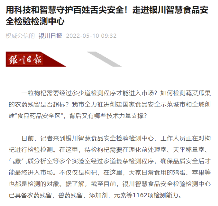 隨著牛羊肉、靈武長(zhǎng)棗、枸杞和紅酒等特色農(nóng)產(chǎn)品走出寧夏、相關(guān)產(chǎn)業(yè)逐步壯大,對(duì)特色農(nóng)產(chǎn)品的食品安全保障越來(lái)越受到關(guān)注和重視。